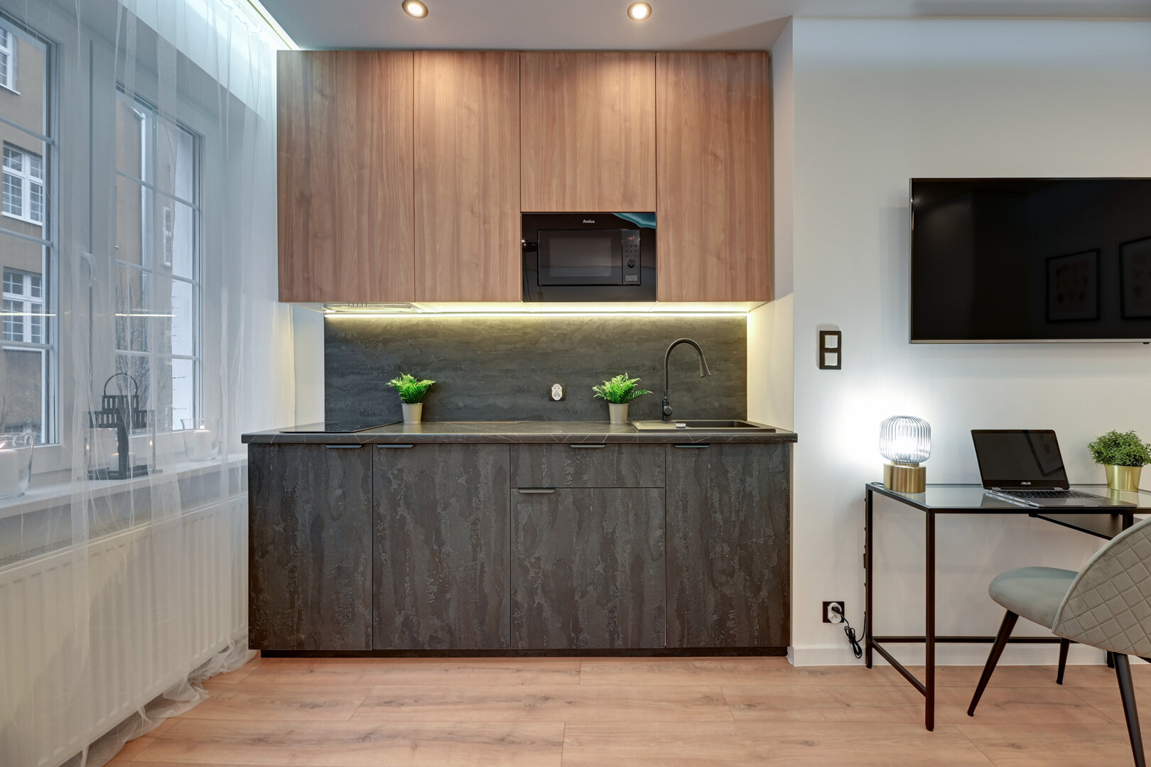 Począwszy od oddzielnej sypialni, w pełni wyposażonej kuchni, zmywarki, pralki po nowoczesne wnętrze pozwala na odpoczynek po trudach zwiedzania.